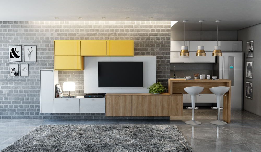 Segundo Jonas Daniel, da loja Lisi Fraga Móveis & Planejados, essa “desconstrução” da simetria pode ser levada ao ambiente por meio de móveis que surpreendem em suas formas, agregando personalidade à decoração. “São misturas de materiais, cores, proporções e design criativo e inusitado que dão um toque contemporâneo aos ambientes”, diz. Nesse sentido, segundo Jonas, misturam-se, num mesmo móvel, brilho com fosco, há variação de texturas, prateleiras irregulares, variação do número de objetos de um lado para o outro e uso de cadeiras com diferentes cores, por exemplo.
